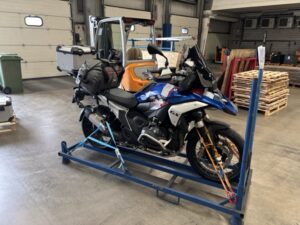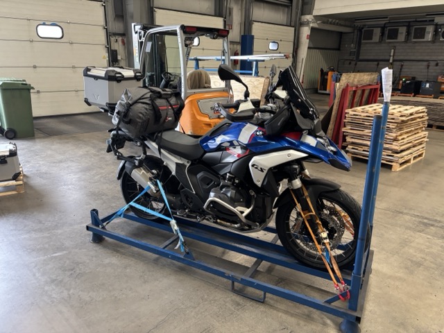 Dus onder het motto “al doende leert men” was een motortrailer gehuurd en kwamen onze raspaarden zonder enige inspanning aan in Moerdijk. Het laden en lossen van de motoren was nog even wennen maar alles is vlot en veilig verlopen. Datzelfde geldt ook voor het transport-klaar maken bij Nord Cargo; ook daar waren we al ervaren in en verliep dit soepeltjes.